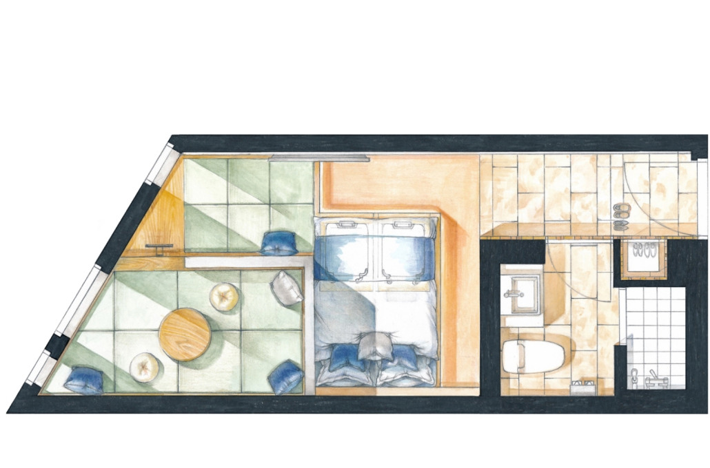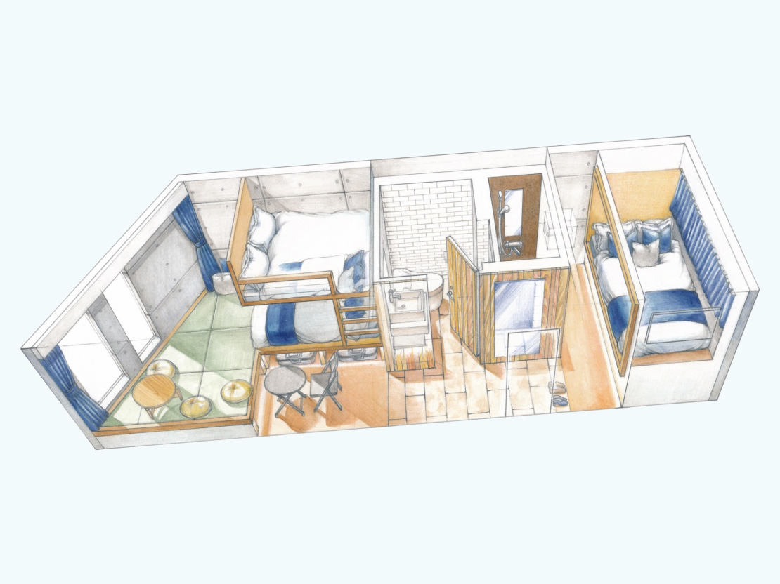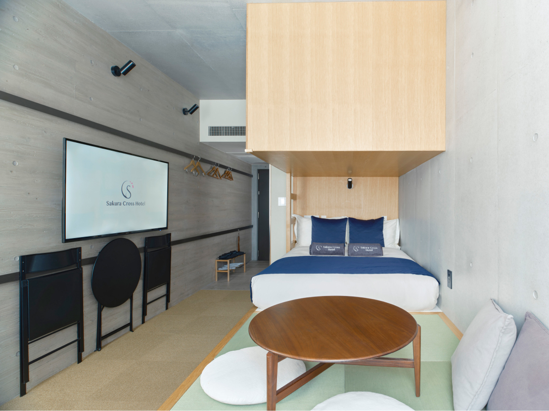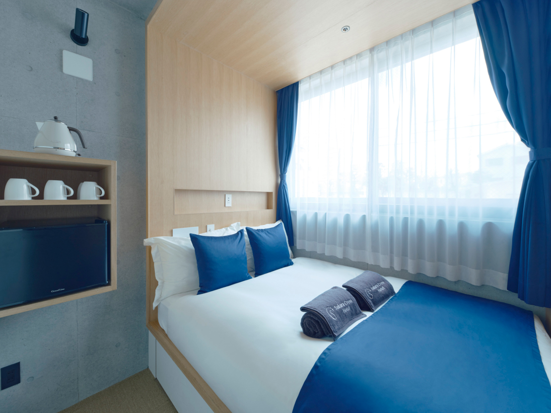 その代わりとしてお客様に快適にお過ごしいただけるよう、ホテル共用部を縮小し、より広いお部屋を提供しております。