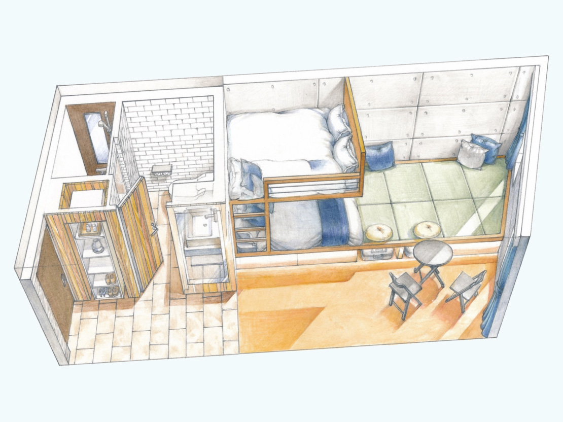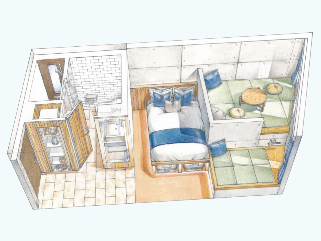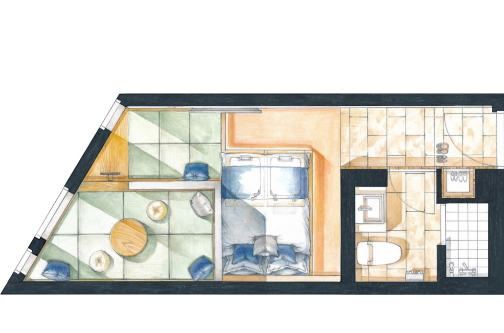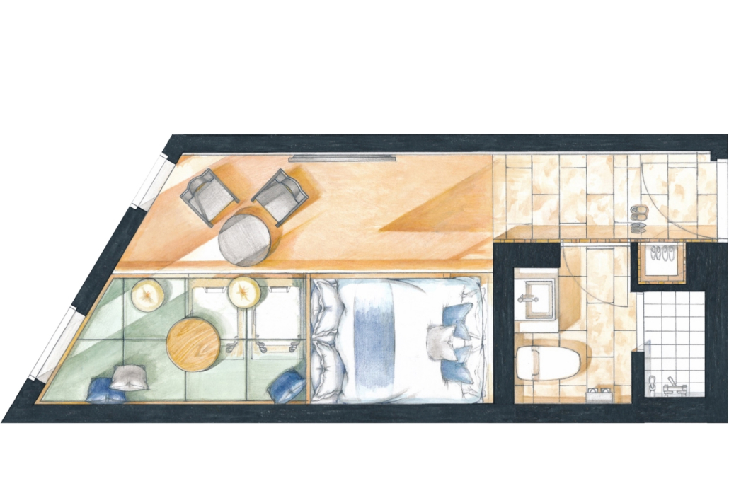 その代わりとしてお客様に快適にお過ごしいただけるよう、ホテル共用部を縮小し、より広いお部屋を提供しております。